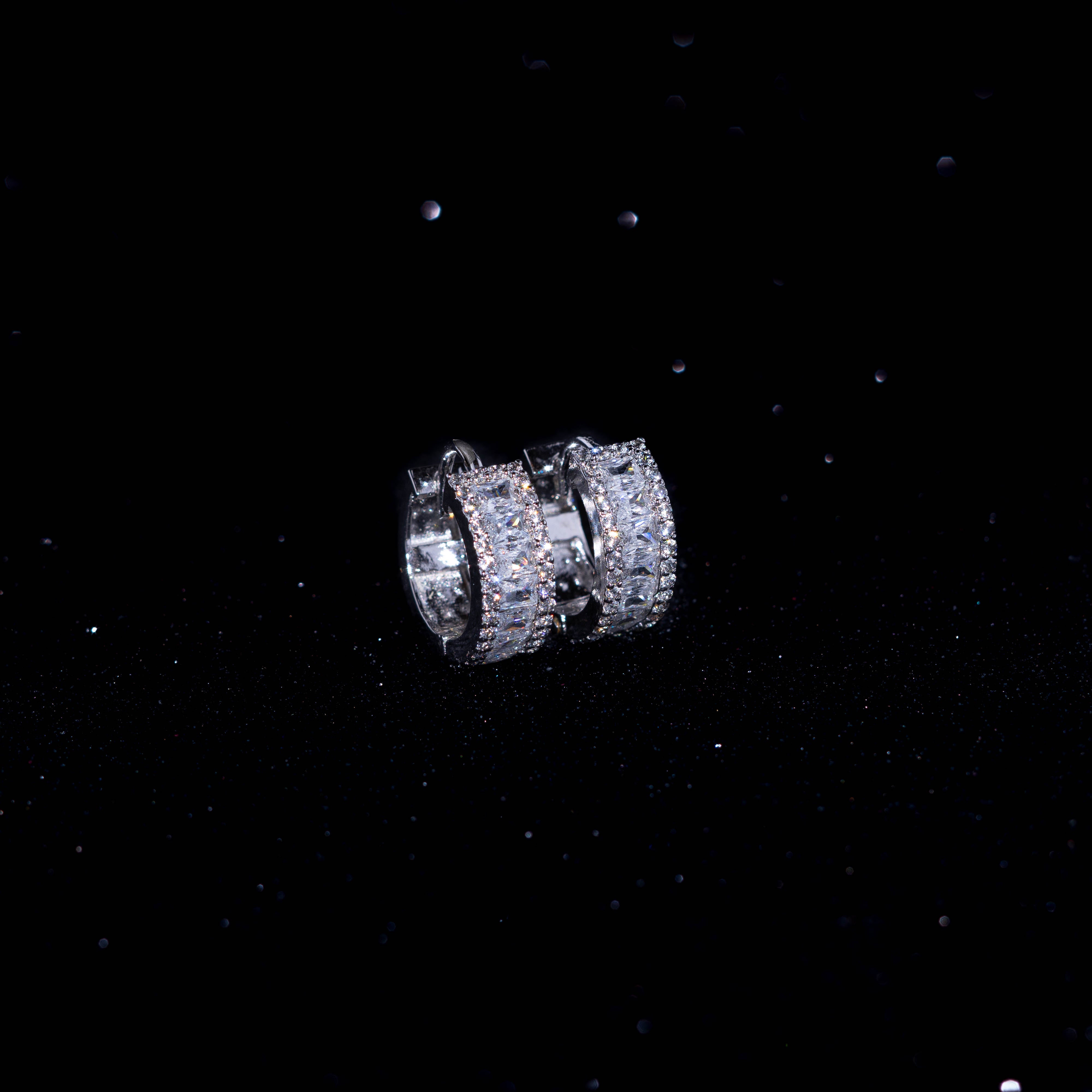 Bold and modern, the Baguette Hoops are clunky statement earrings featuring a row of sparkling baguette zircons. Handcrafted in pure silver and plated with white gold, they bring edgy sophistication and city-chic glamour to any look — perfect for the fearless city girl.