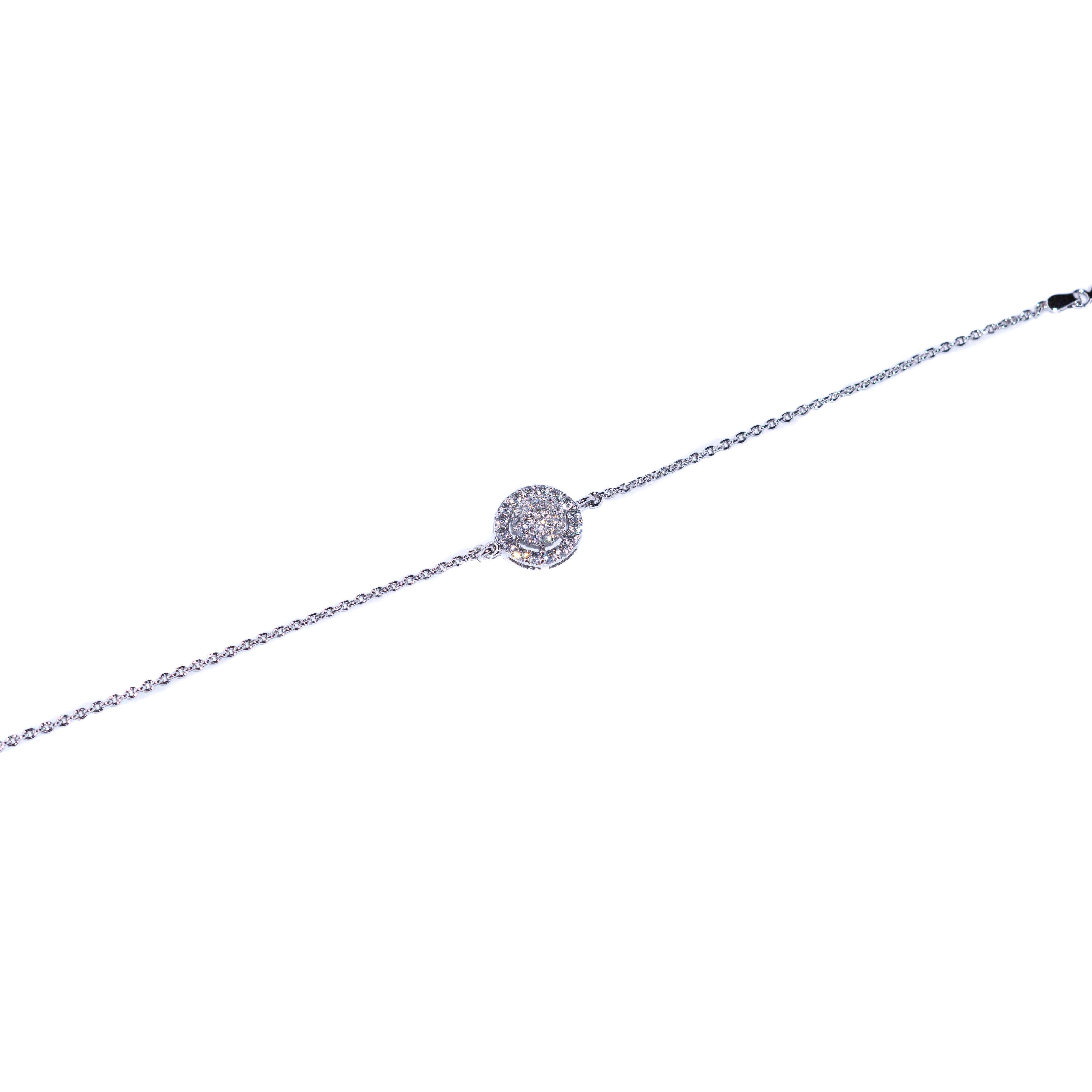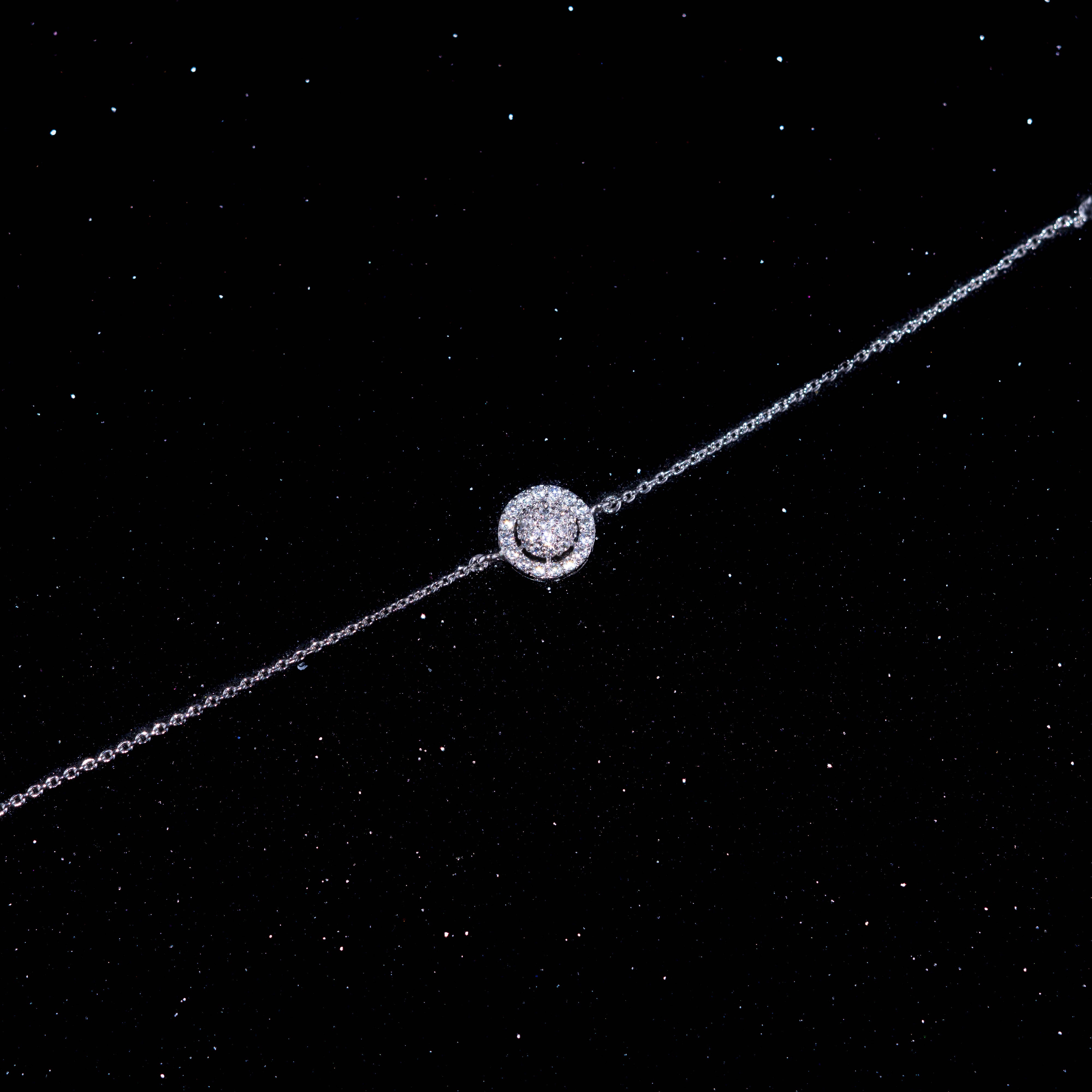 Radiant and refined, the Chrysler Bracelet draws inspiration from the iconic tall white building in NYC. Designed in a round halo cluster of brilliant white zircons, it creates an illusion diamond effect that dazzles from every angle.