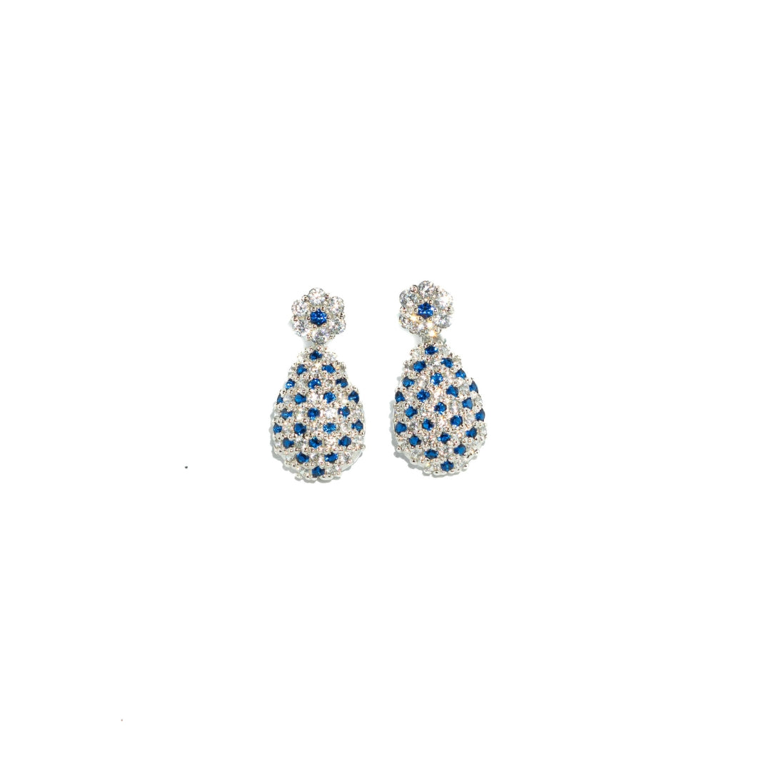 Elegant teardrop-shaped earrings featuring a stunning checkered grid of deep blue sapphires and sparkling white zircons. The Dew Drop Earrings are a timeless classic, perfect for adding a touch of sophistication to any look. Discover more statement pieces at our Silver jewelry store, where elegance meets everyday luxury.