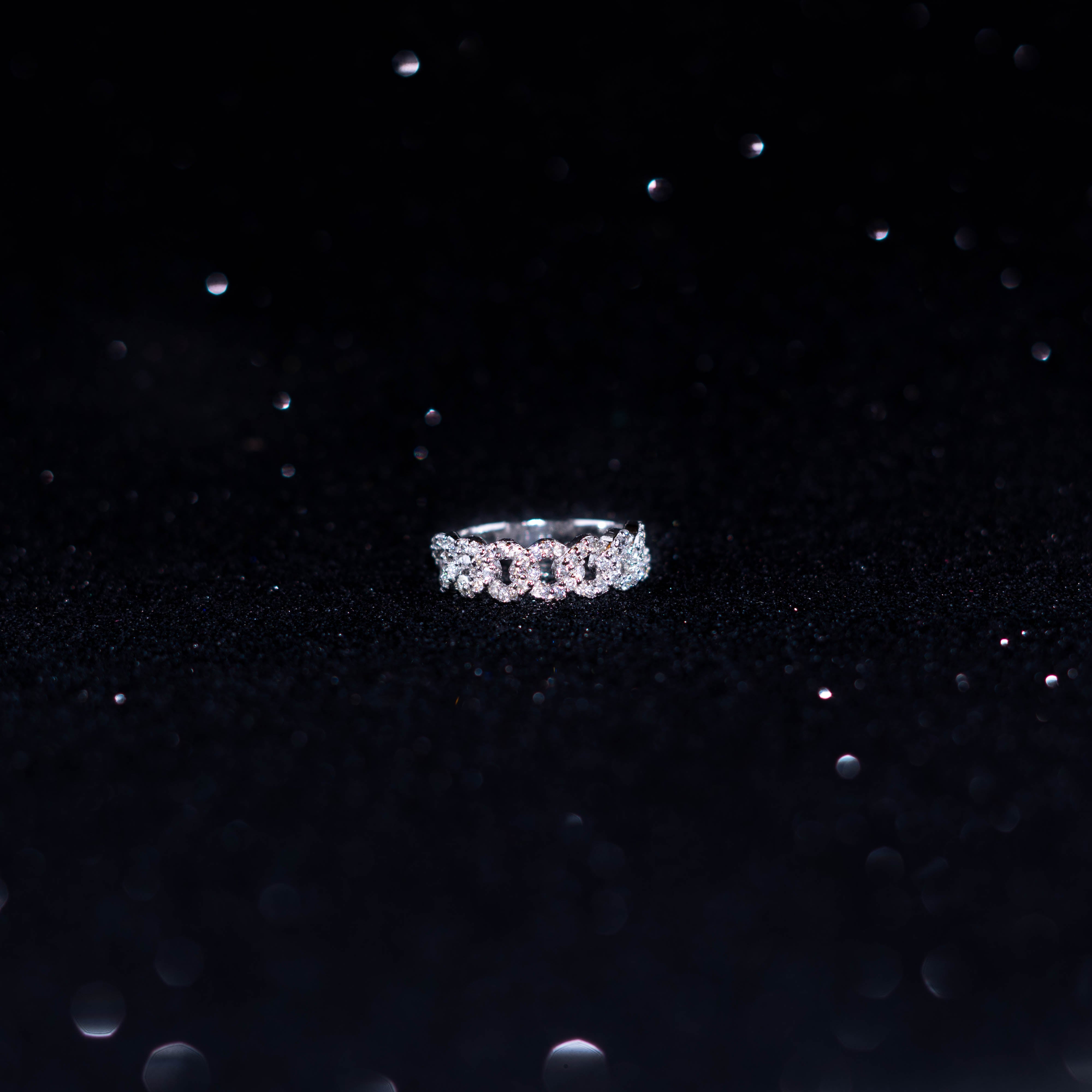 A sophisticated rope-design band, delicately encrusted to catch the light. Crafted in fine 925 sterling silver and plated in white gold, this ring is a timeless statement for everyday elegance.