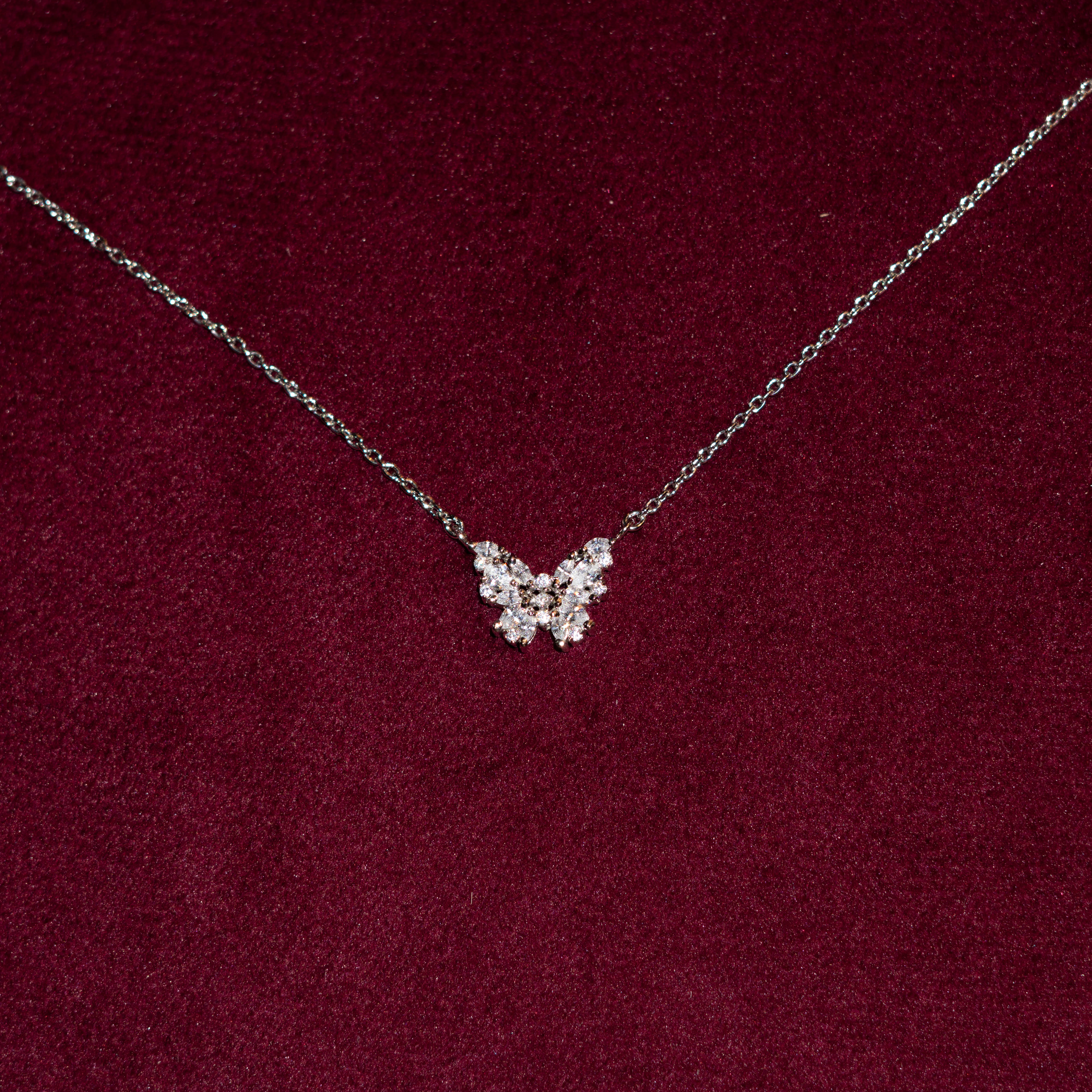 A delicate butterfly formed from a cluster of sparkling stones, arranged to create the illusion of a diamond. The Starlet Necklace shines with every movement, adding a touch of celestial elegance — perfect for Eid gifting or elevating any look with subtle sparkle. Discover more timeless pieces at our Handmade silver jewelry store, where every design is crafted with care and elegance.
