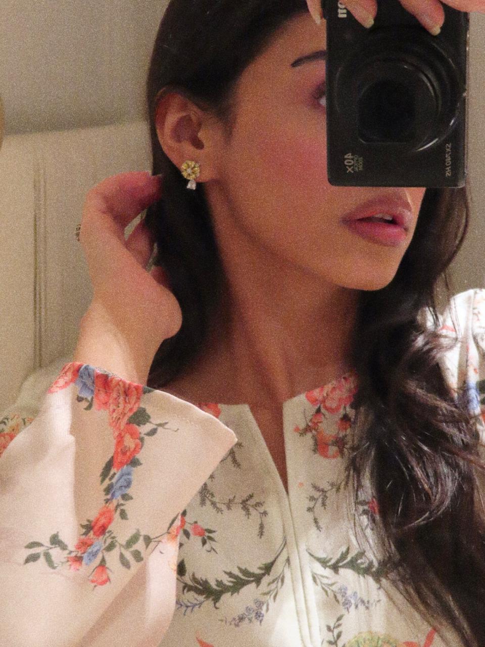 Bright and playful, the Taxi Earrings capture the pulse of NYC — bold, lively, and unforgettable. Featuring a delicate flower design with a vibrant Tiffany yellow stone and a teardrop white zircon drop, they bring a fresh burst of color and sparkle to any look.