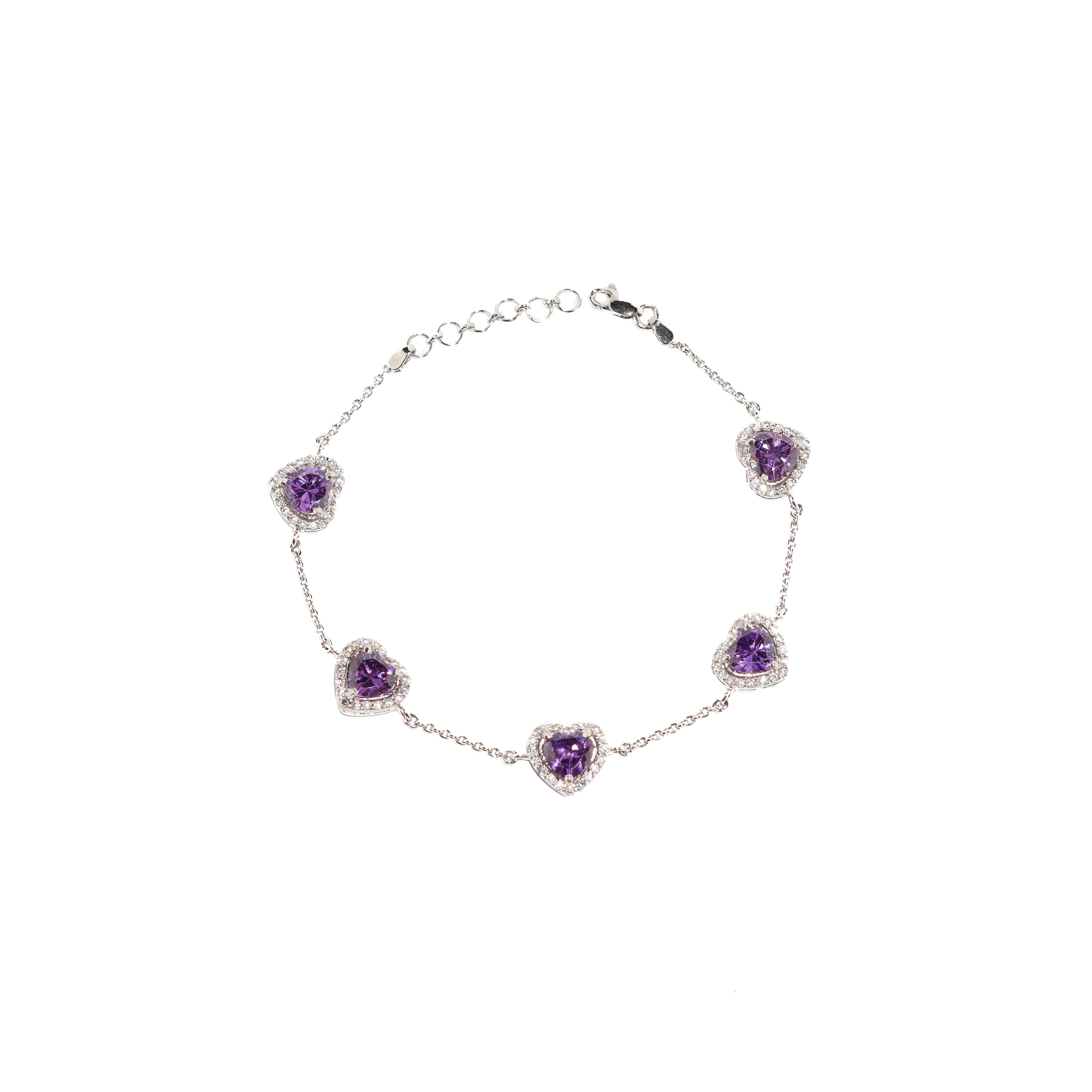 Five violet hearts sparkle in perfect harmony, linked together with a pure sterling silver chain. This romantic design brings a touch of charm and elegance to any look — perfect as a thoughtful gift or a sweet everyday accessory.